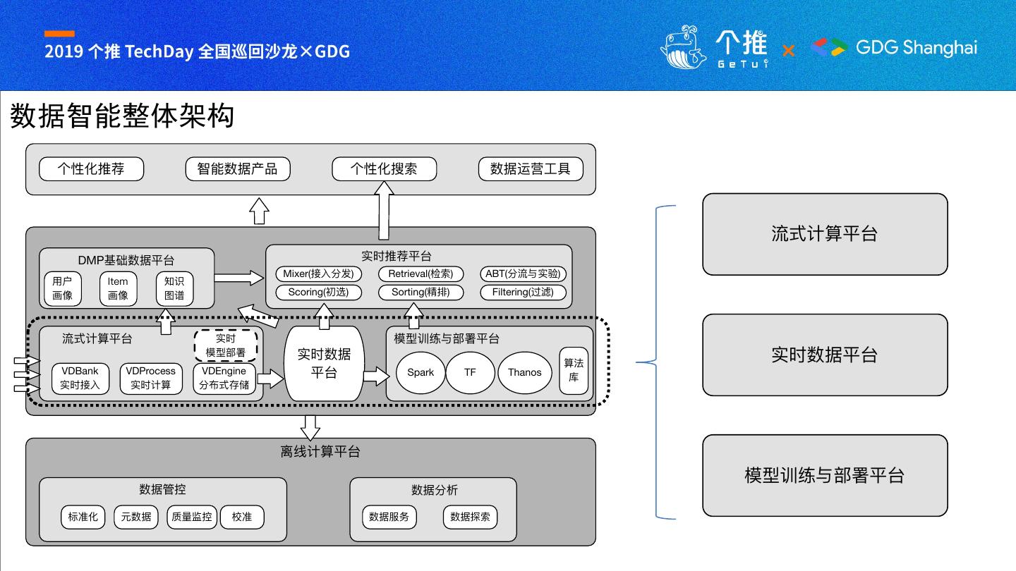 8 .数据智能整体架构 DMP Mixer( ) Retrieval( ) ABT( ) Scoring( ) Sorting( ) Filtering( ) VDBank VDProcess VDEngine Spark TF Thanos