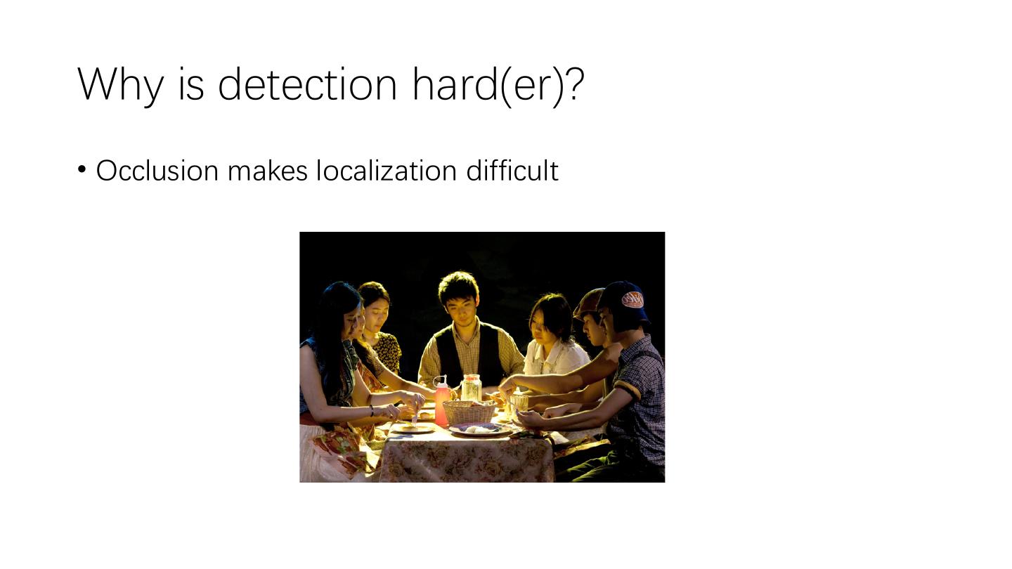 11 .Why is detection hard(er)? • Occlusion makes localization difficult