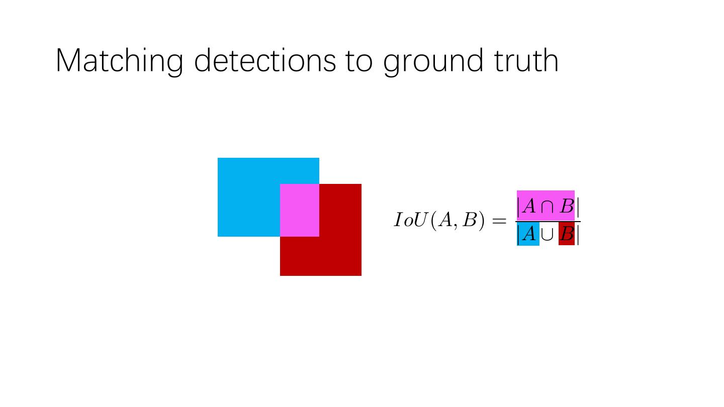 18 .Matching detections to ground truth |A \ B| IoU (A, B) = |A [ B|