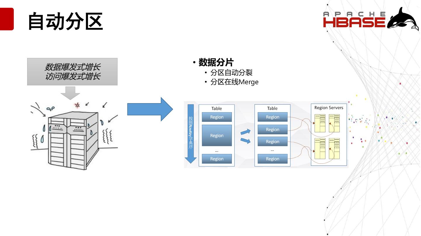 7 .自动分区 • 数据分片 数据爆发式增长 • 分区自动分裂 访问爆发式增长 • 分区在线Merge