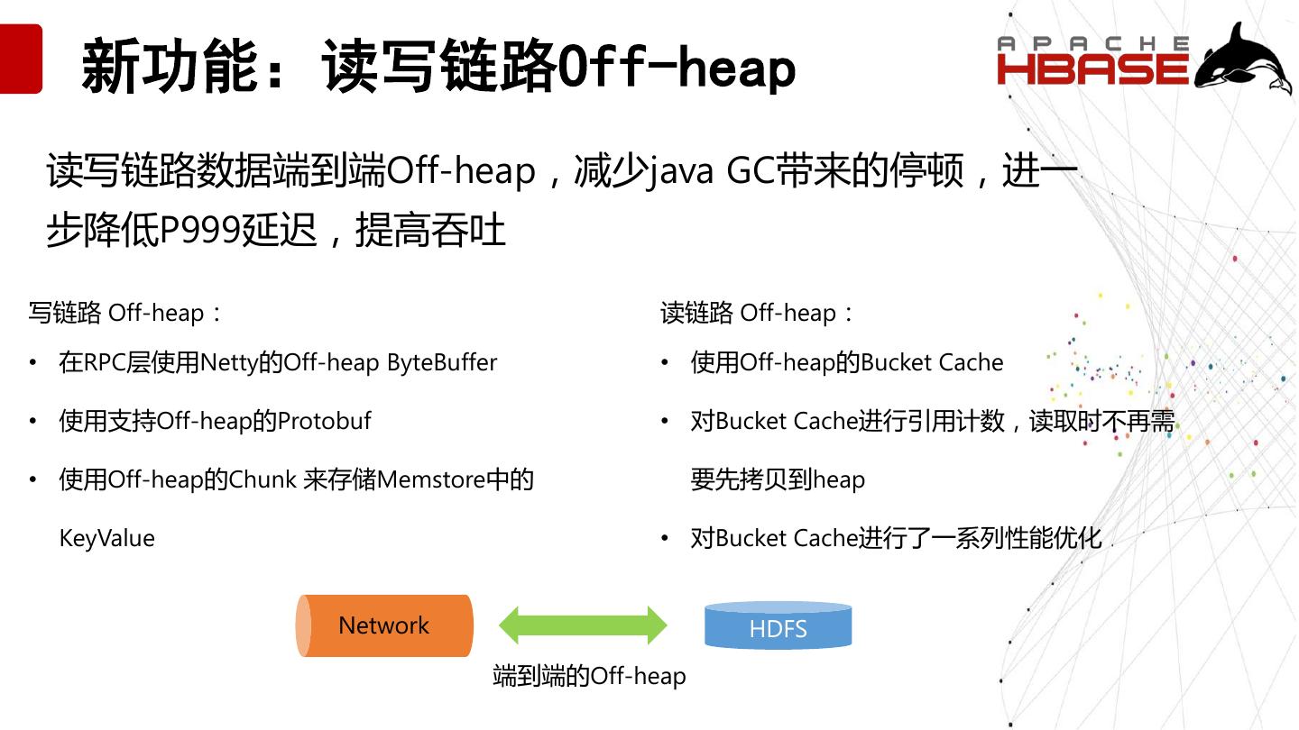 23 . 新功能:读写链路Off-heap Offheap Read-Path in Production - The Alibaba story https://blogs.apache.org/hbase/entry/offheap-read-path-in-production
