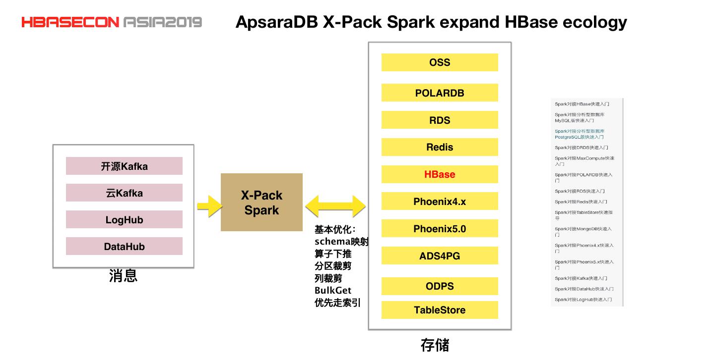 11 . ApsaraDB X-Pack Spark expand HBase ecology OSS POLARDB RDS Redis Kafka HBase Kafka X-Pack Phoenix4.x Spark LogHub Phoenix5.0 schema DataHub ADS4PG BulkGet ODPS TableStore