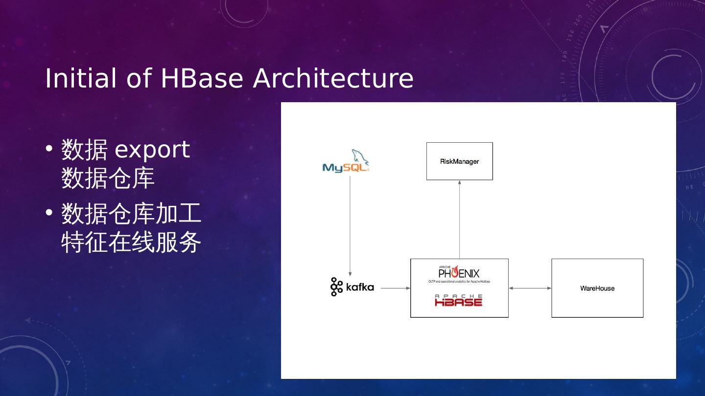 7 .Initial of HBase Architecture 数据 export 数据仓库 数据仓库加工特征在线服务