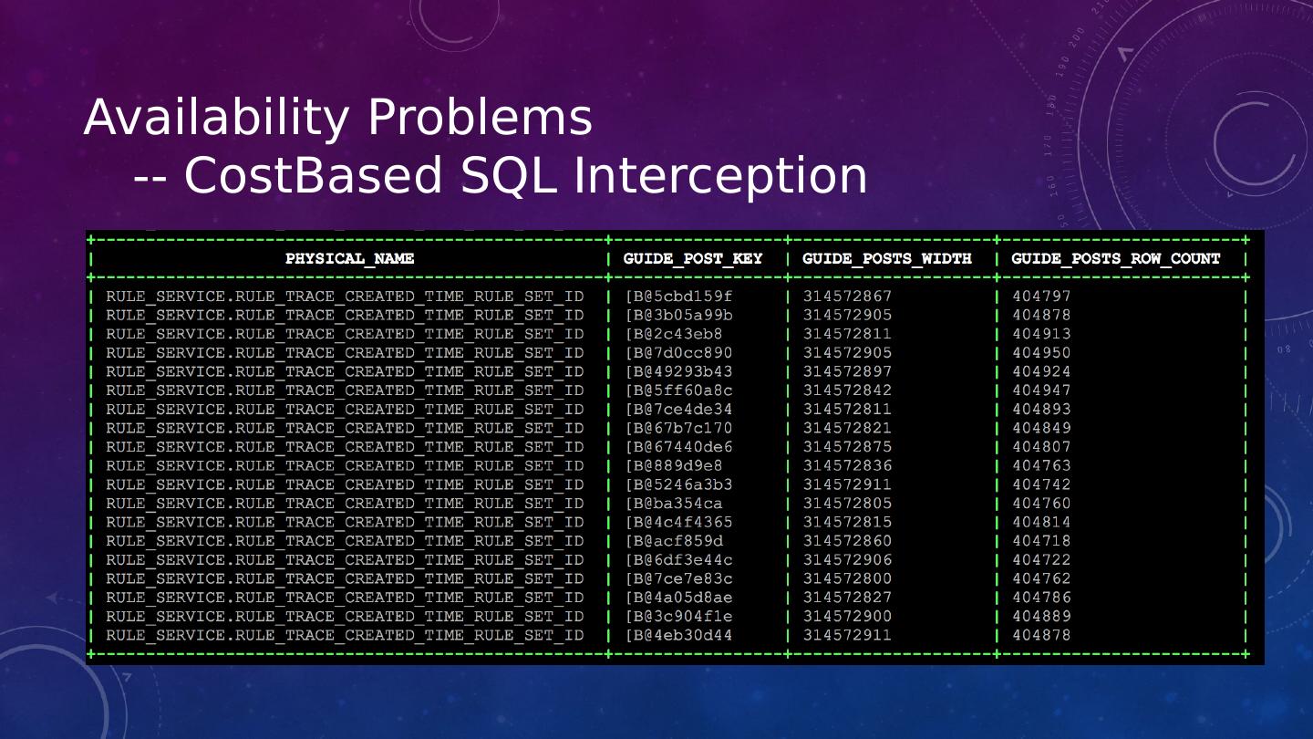 17 .Availability Problems -- RuleBased SQL Interception 是否是 RowKey scan 是否是索引查询 FullScan 是不是允许 ? select count(*) from table