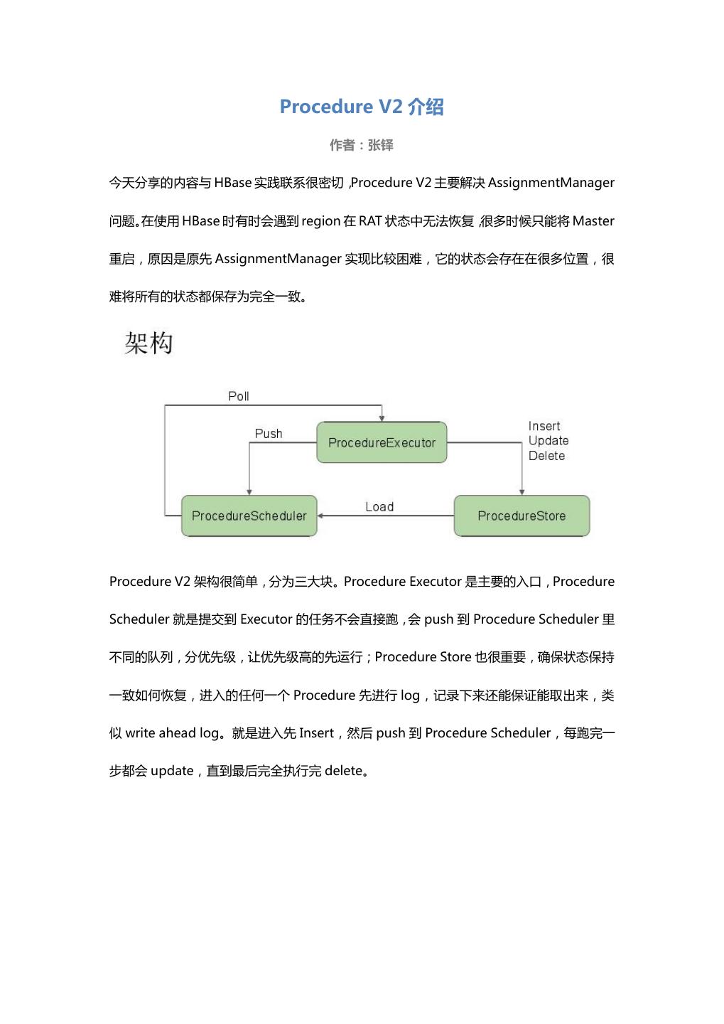 13 .3.2.5 Assignment MangerV2 这是一个非常重要的模块,HBase 中的状态流转,建表删表,都需要在 Assignment MangerV2 上进行,之前旧 AM 系统参与角色多,状态更新混乱,效率低,无事务保证,容 易出现 RIT 问题。所以 AM V2 使用 ProcedureV2 来保证 Table/Region 状态转换在 master 重启后仍然能恢复执行,然后去除了 Zookeeper 做为中间角色,Master/RegionServer 直接交互,Region assign/unassgin 速度大大提升。