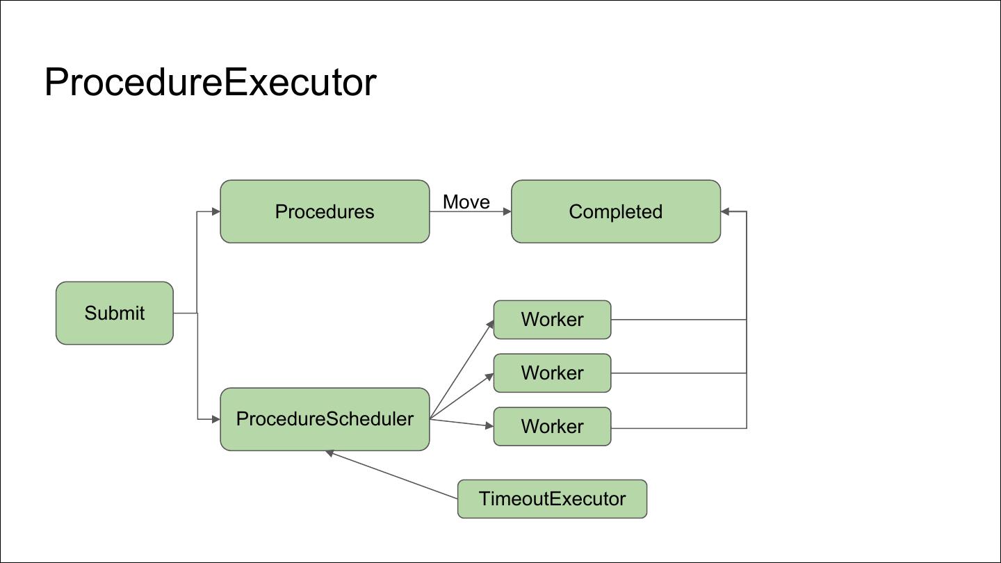 3 .ProcedureExecutor Procedures Move Completed Submit Worker Worker ProcedureScheduler Worker TimeoutExecutor