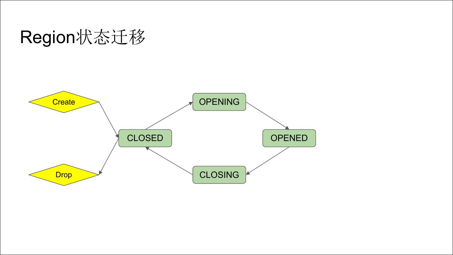 9 .Region状态迁移 Create OPENING CLOSED OPENED Drop CLOSING