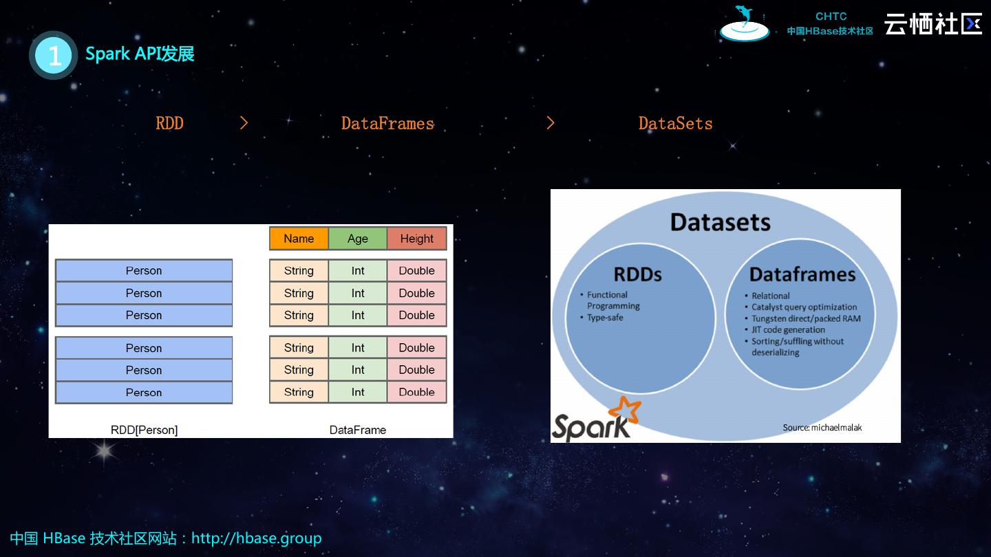 14 . 1 Spark API发展 RDD > DataFrames > DataSets 中国 HBase 技术社区网站:http://hbase.group
