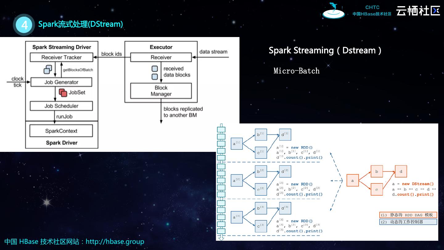 17 . 4 Spark流式处理(DStream) Spark Streaming(Dstream) Micro-Batch 中国 HBase 技术社区网站:http://hbase.group