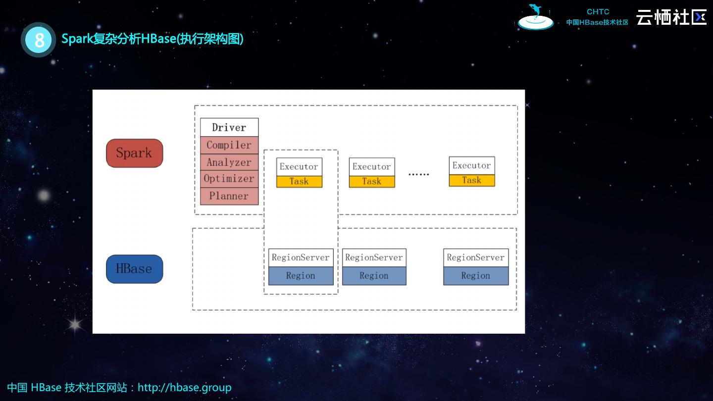 21 . 8 Spark复杂分析HBase(执行架构图) 中国 HBase 技术社区网站:http://hbase.group