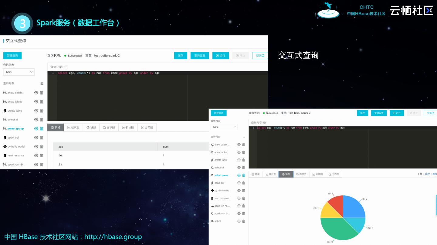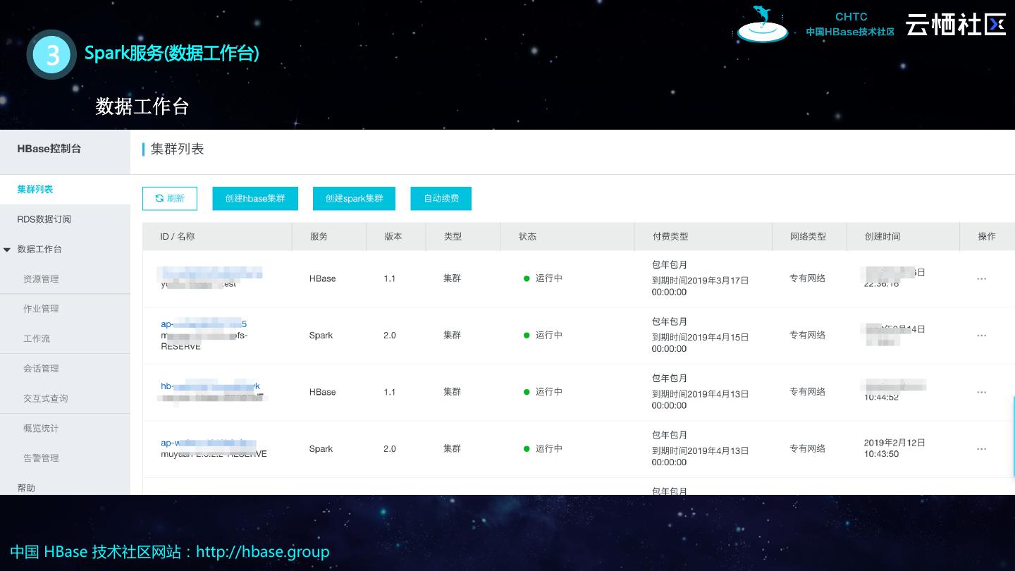 28 . 3 Spark服务(数据工作台) 数据工作台 中国 HBase 技术社区网站:http://hbase.group