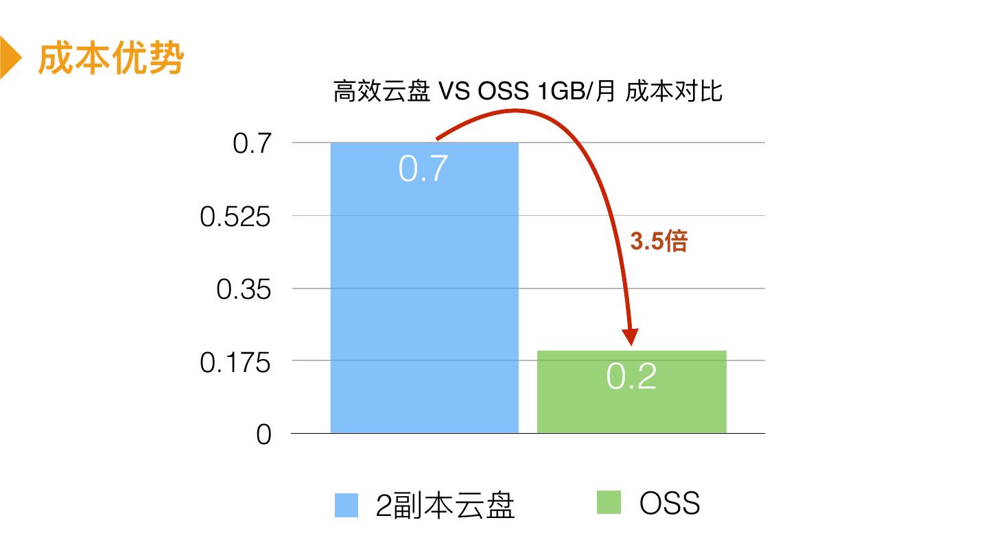 13 .成本优势 ⾼高效云盘 VS OSS 1GB/⽉月 成本对⽐比 0.7 0.7 0.525 3.5倍 0.35 0.175 0.2 0 2副本云盘 OSS
