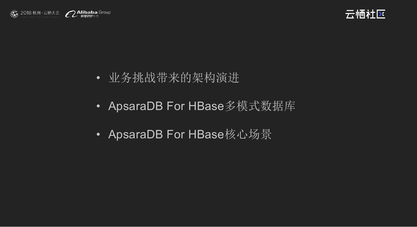 2 .• 业务挑战带来的架构演进 • ApsaraDB For HBase多模式数据库 • ApsaraDB For HBase核心场景
