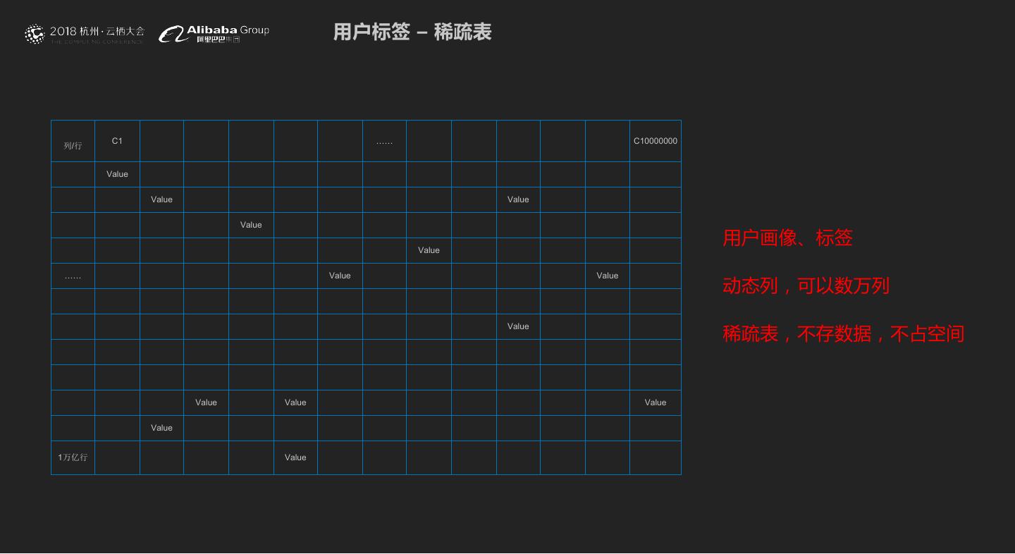 22 . 用户标签 – 稀疏表 C1 …… C10000000 列/行 Value Value Value Value 用户画像、标签 Value …… Value Value 动态列,可以数万列 Value 稀疏表,不存数据,不占空间 Value Value Value Value 1万亿行 Value