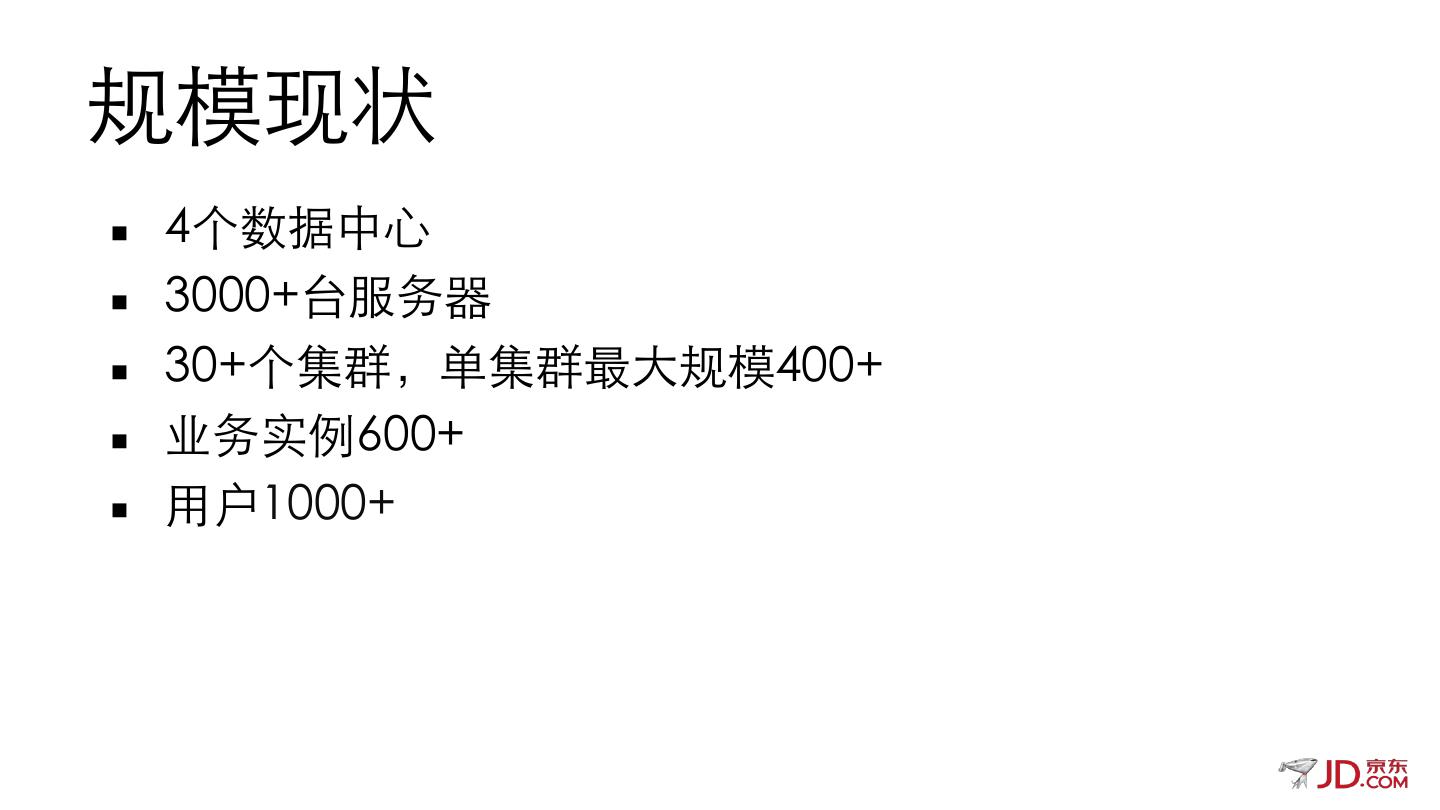 3 .规模现状 4个数据中心 3000+台服务器 30+个集群,单集群最大规模400+ 业务实例600+ 用户1000+