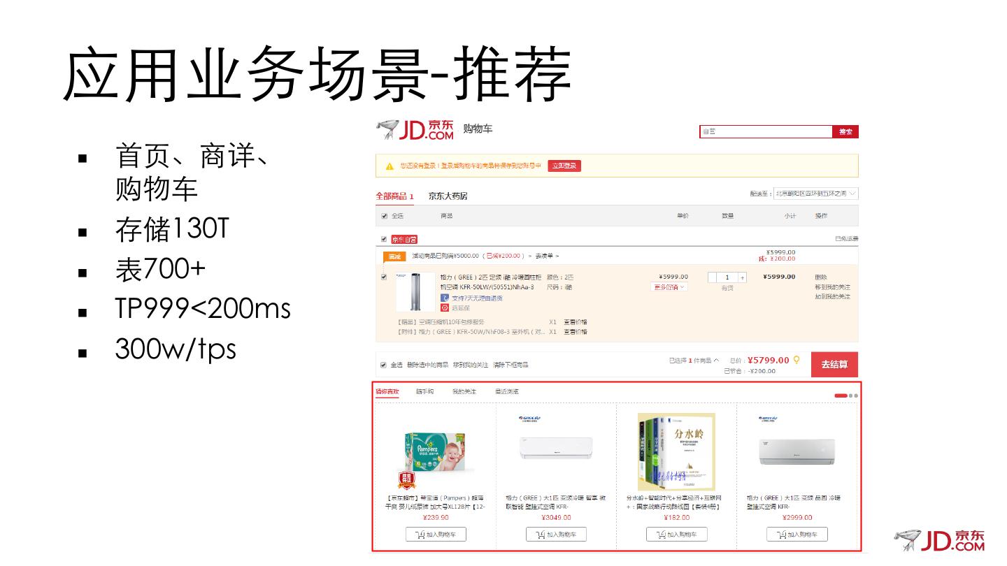 7 .应用业务场景-推荐 首页、商详、 购物车 存储130T 表700+ TP999<200ms 300w/tps