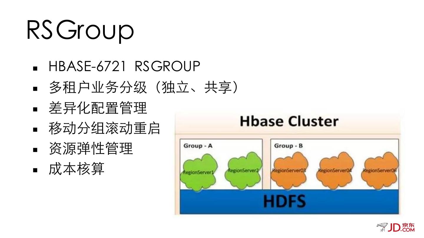 11 .RSGroup HBASE-6721 RSGROUP 多租户业务分级(独立、共享) 差异化配置管理 移动分组滚动重启 资源弹性管理 成本核算