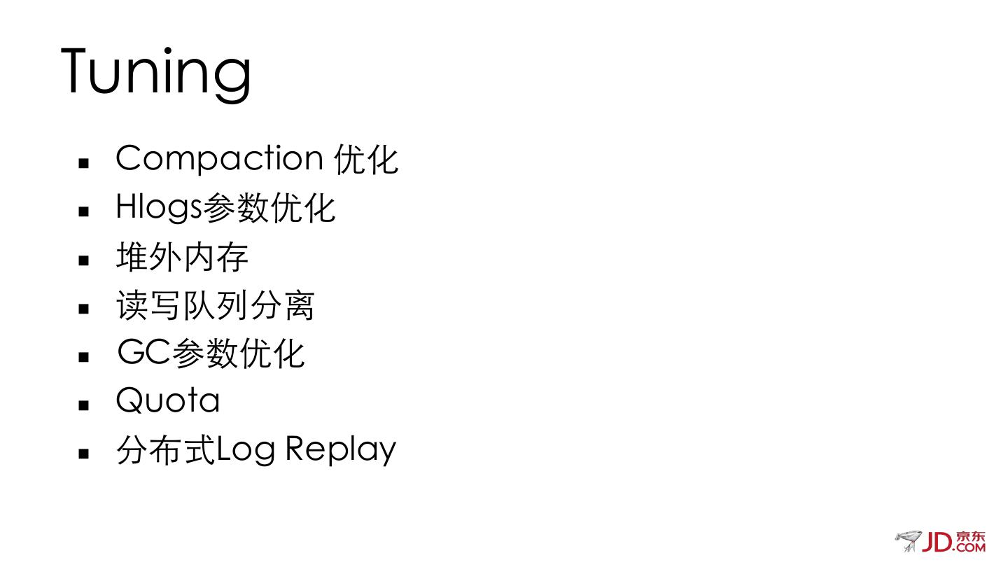 19 .Tuning Compaction 优化 Hlogs参数优化 堆外内存 读写队列分离 GC参数优化 Quota 分布式Log Replay