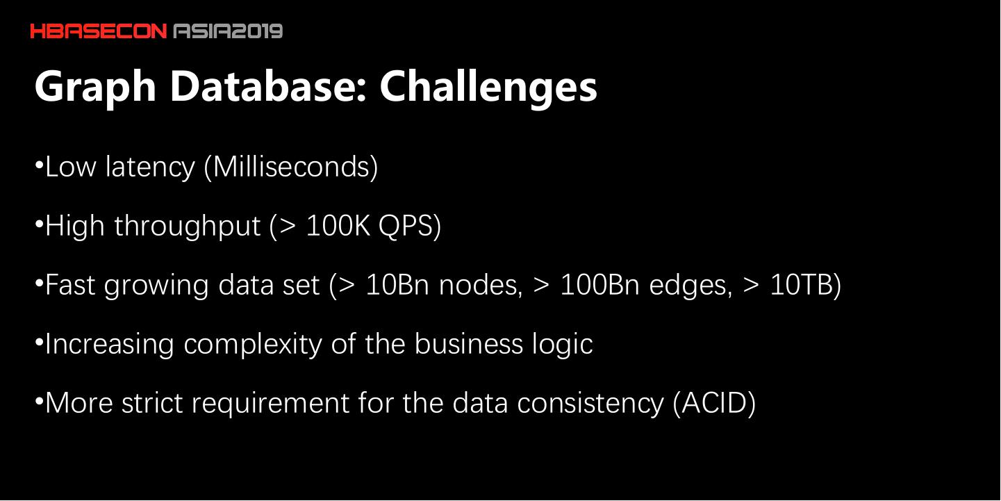 5 .Graph Database: Challenges •Low latency (Milliseconds) •High throughput (> 100K QPS) •Fast growing data set (> 10Bn nodes, > 100Bn edges, > 10TB) •Increasing complexity of the business logic •More strict requirement for the data consistency (ACID)