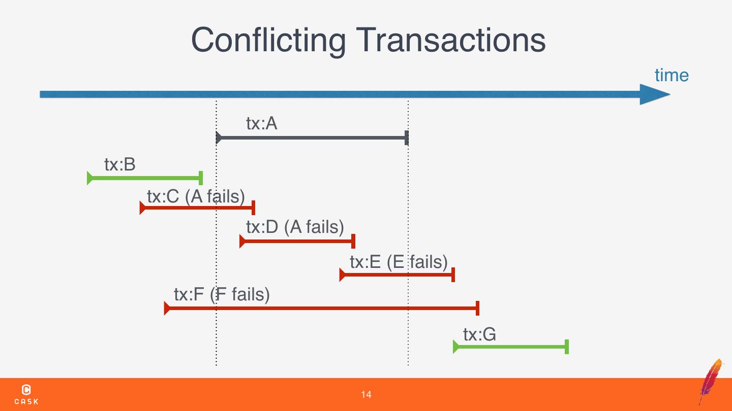 17 . Conflicting Transactions time tx:A tx:B tx:C (A fails) tx:D (A fails) 14