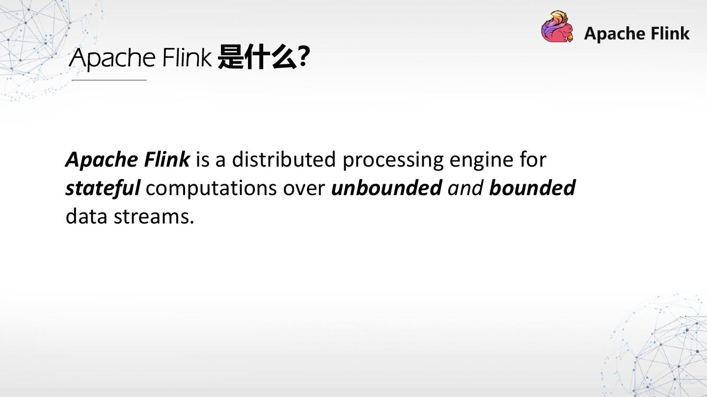 3 .Apache Flink 是什么? Apache Flink is a distributed processing engine for stateful computations over unbounded and bounded data streams.