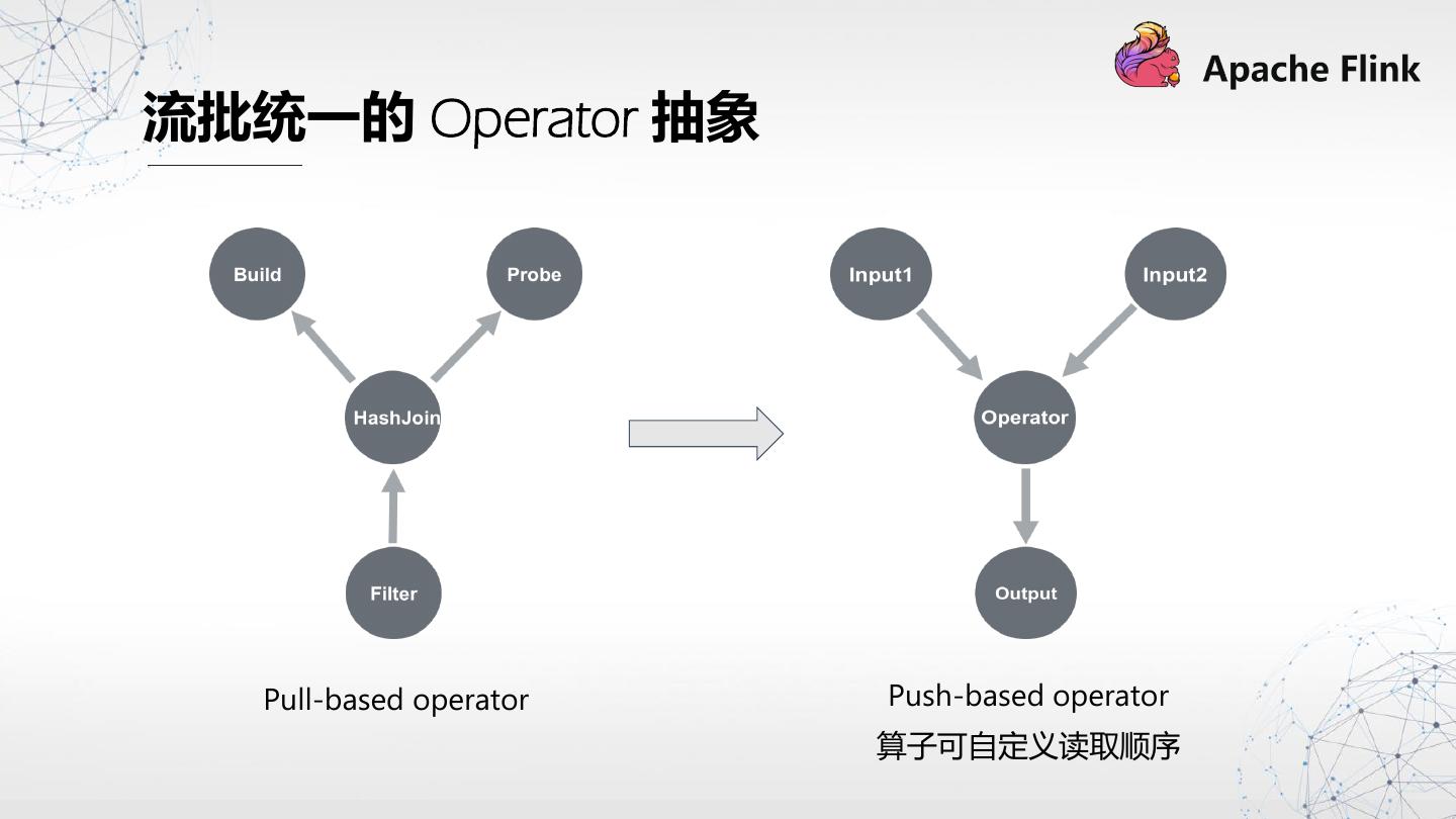 20 .流批统一的 Operator 抽象 Pull-based operator Push-based operator 算子可自定义读取顺序