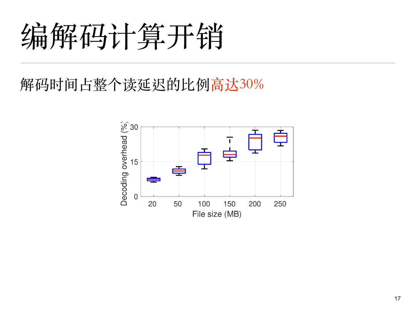 17 .编解码计算开销 解码时间占整个读延迟的比例⾼达30% 17