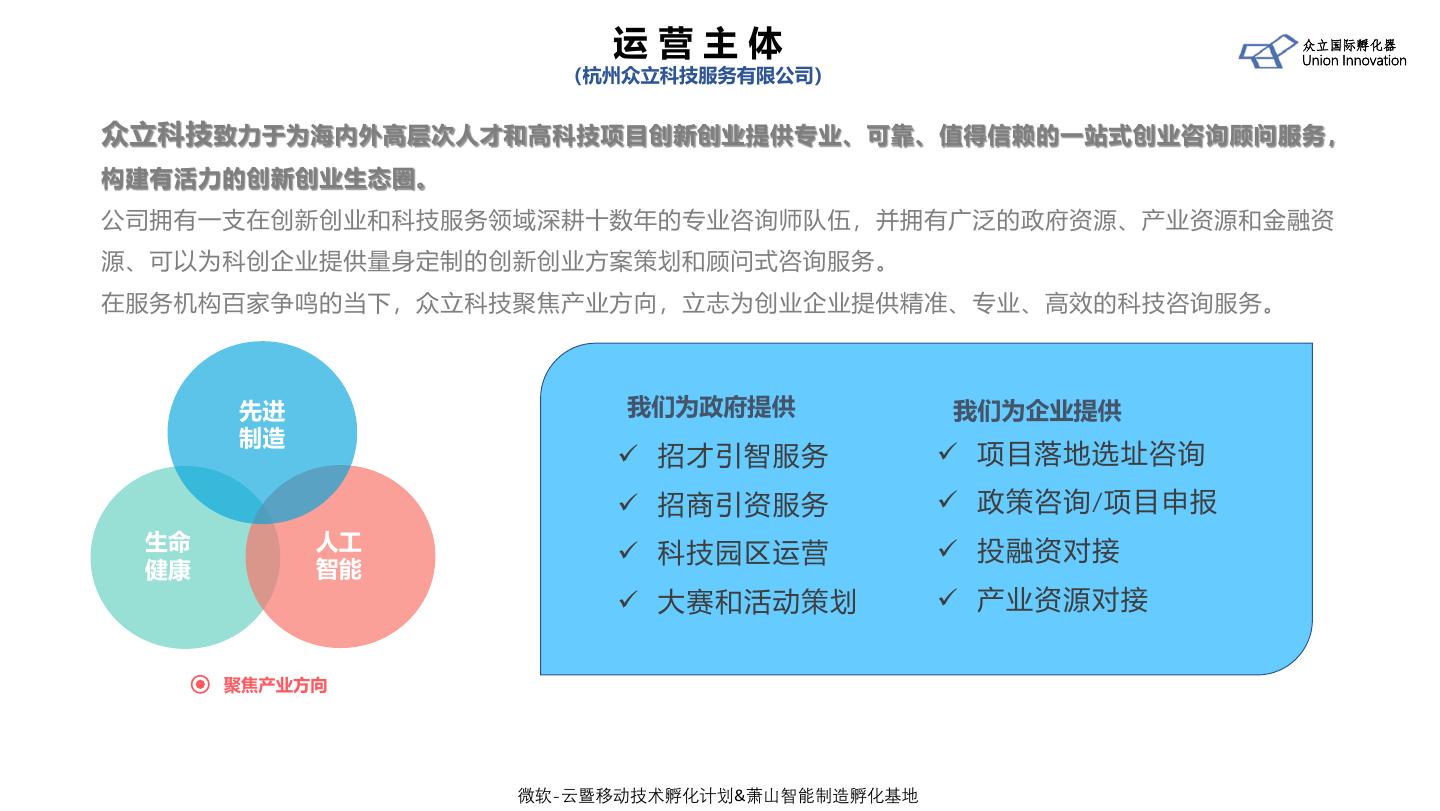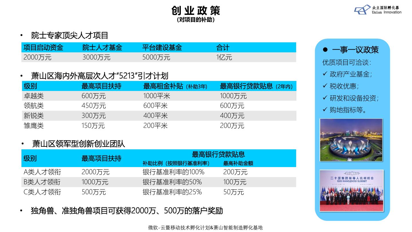 1 .微软-云暨移动技术孵化计划 萧山智能制造孵化基地 众立国际孵化器 Union Innovation Inpowered By Microsoft