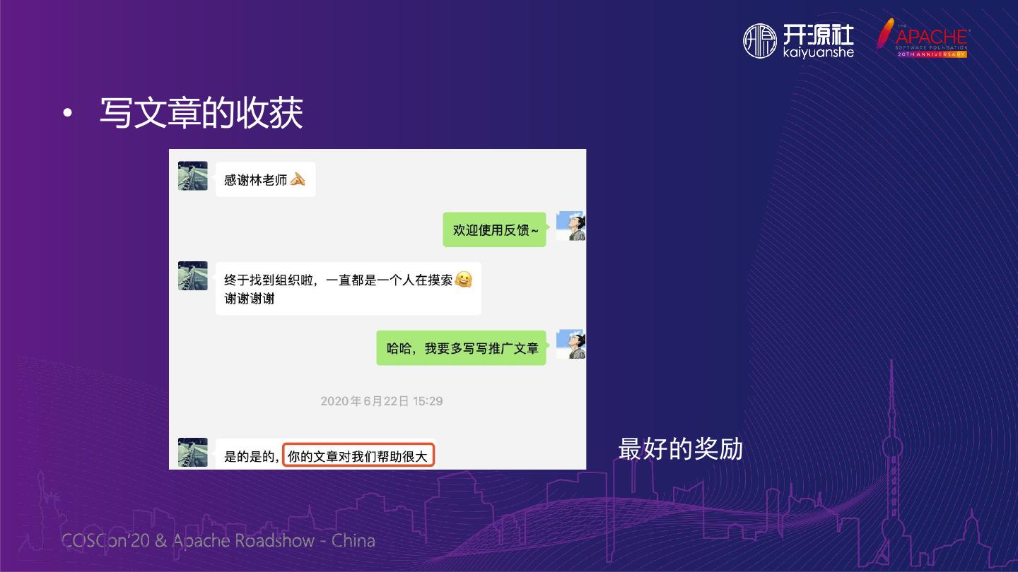 27 .• 写文章的收获 最好的奖励 COSCon’20 & Apache Roadshow - China
