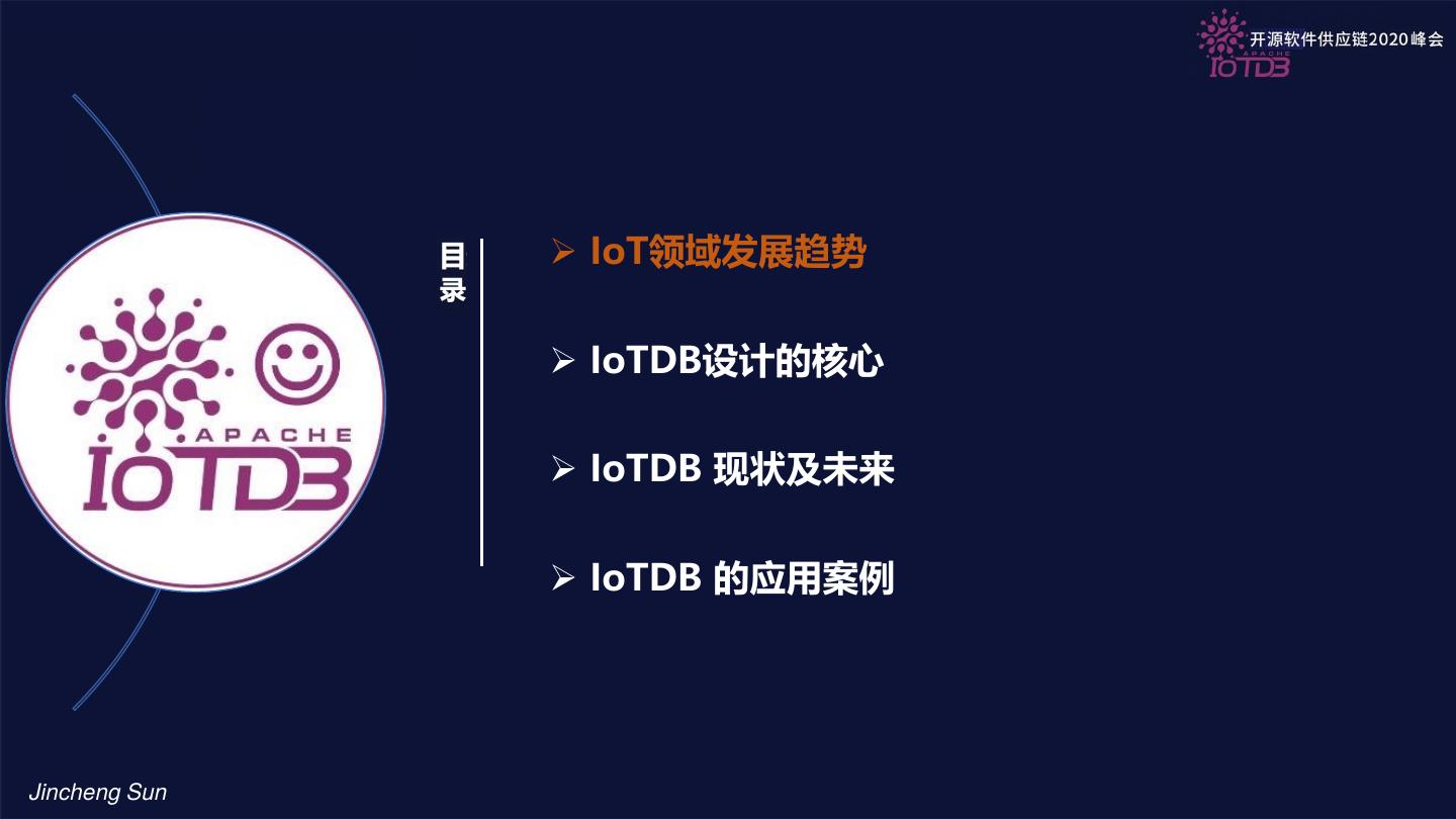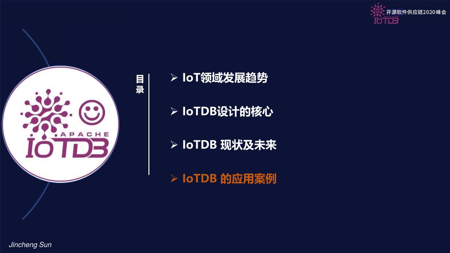 3 . 目录 IoT领域发展趋势 IoTDB设计的核心 IoTDB 现状及未来 IoTDB 的应用案例 Jincheng Sun