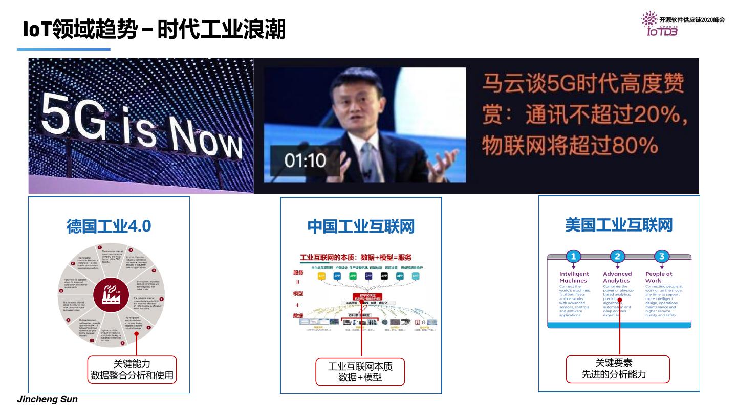 4 . IoT领域趋势 – 时代工业浪潮 德国工业4.0 中国工业互联网 美国工业互联网 关键能力 工业互联网本质 关键要素 数据整合分析和使用 数据+模型 先进的分析能力 Jincheng Sun