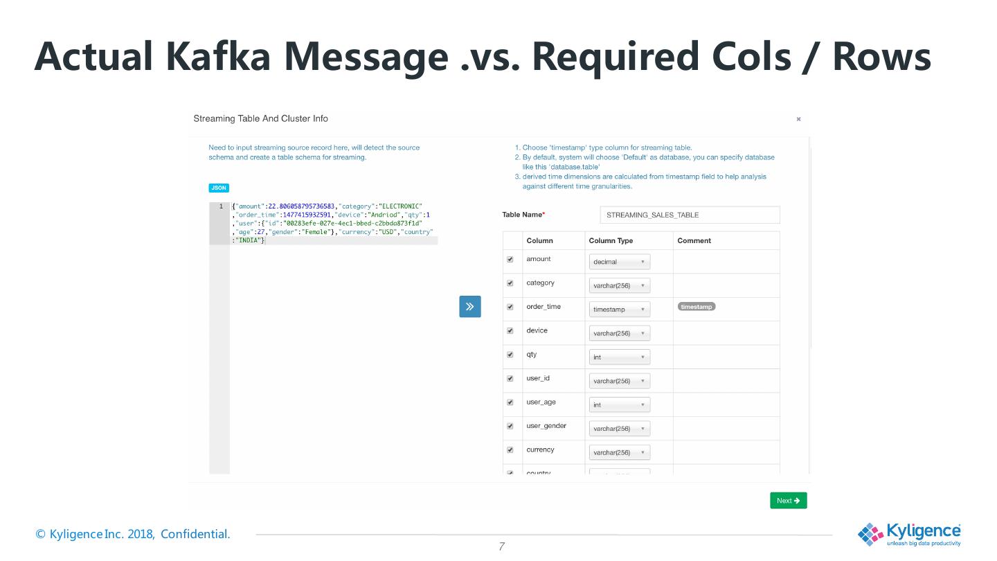 7 .Actual Kafka Message .vs. Required Cols / Rows © Kyligence Inc. 2018, Confidential. 7