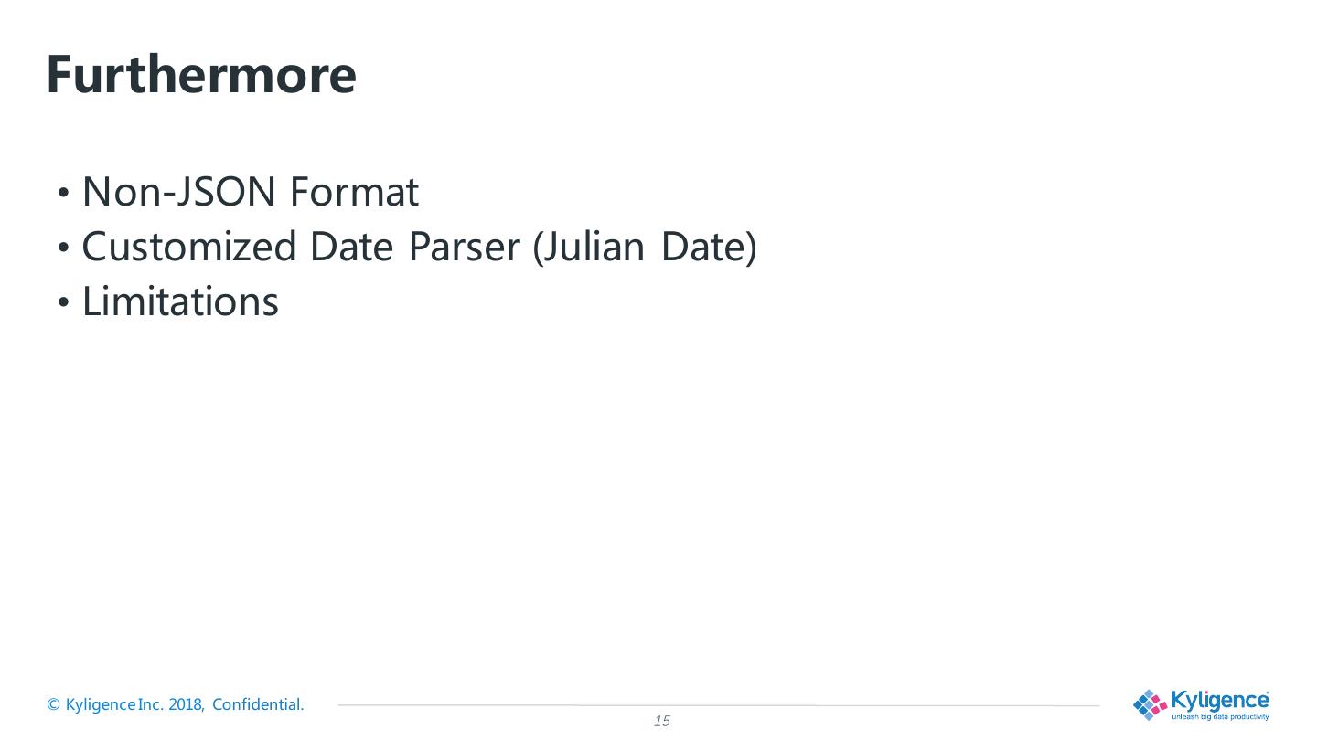 15 .Furthermore • Non-JSON Format • Customized Date Parser (Julian Date) • Limitations © Kyligence Inc. 2018, Confidential. 15