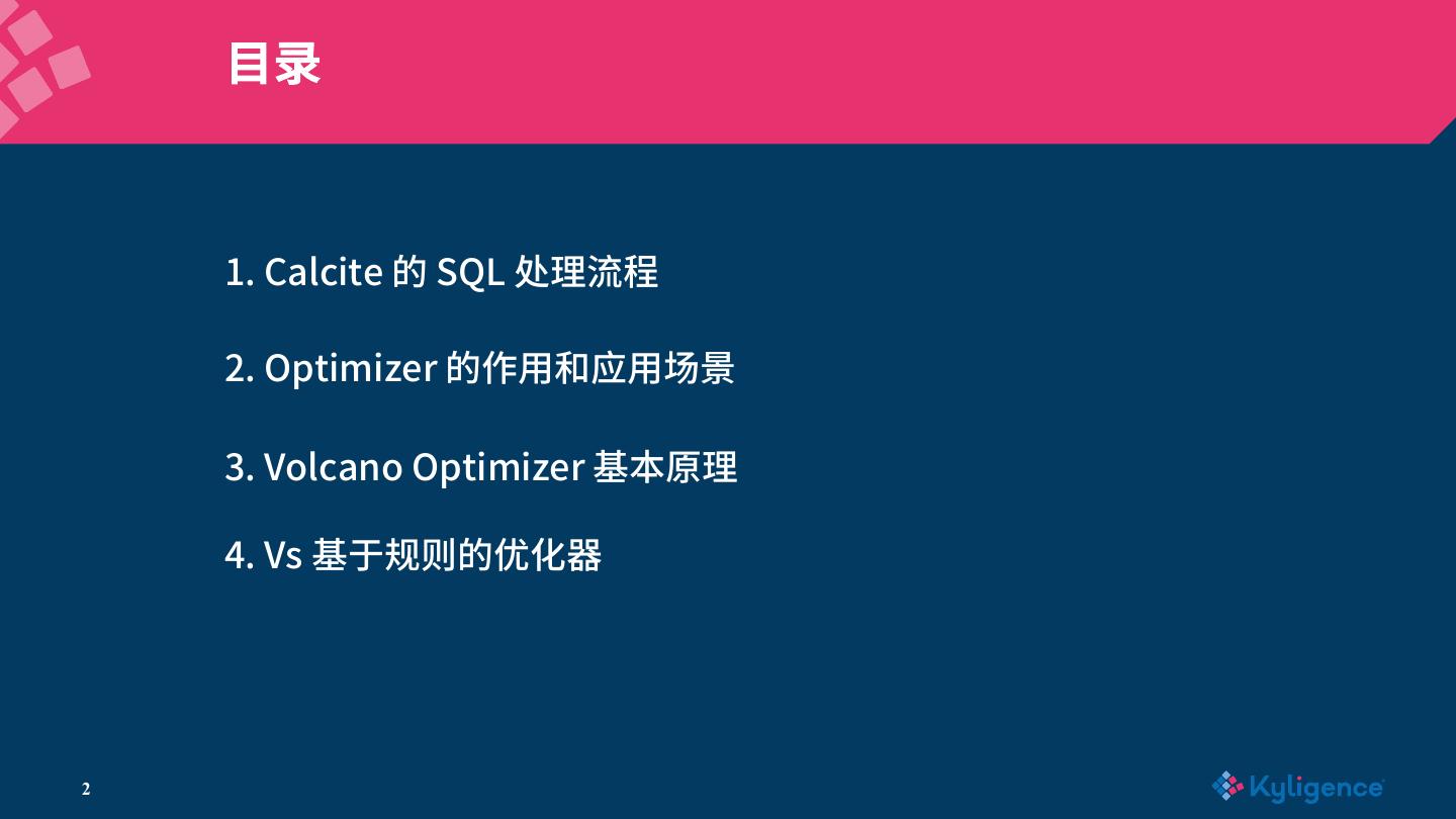 2 . 1. Calcite SQL 2. Optimizer 3. Volcano Optimizer 4. Vs 2
