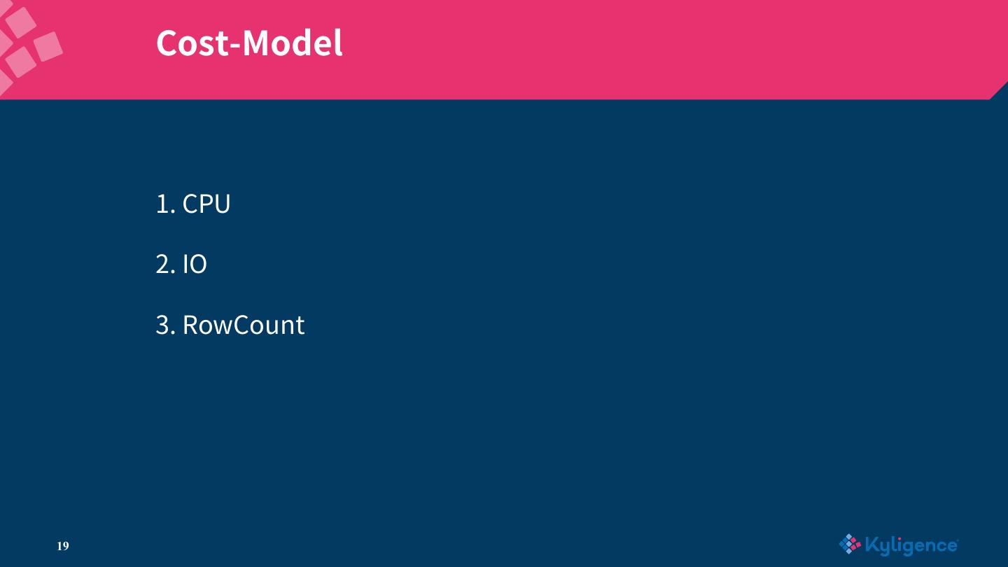 19 . Cost-Model 1. CPU 2. IO 3. RowCount 19