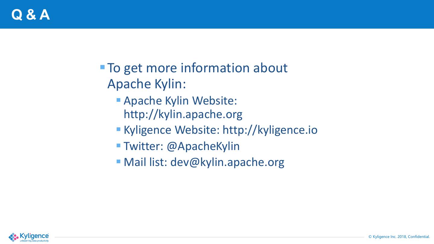 18 .Q&A § To get more information about Apache Kylin: § Apache Kylin Website: http://kylin.apache.org § Kyligence Website: http://kyligence.io § Twitter: @ApacheKylin § Mail list: dev@kylin.apache.org 1 0, . ,