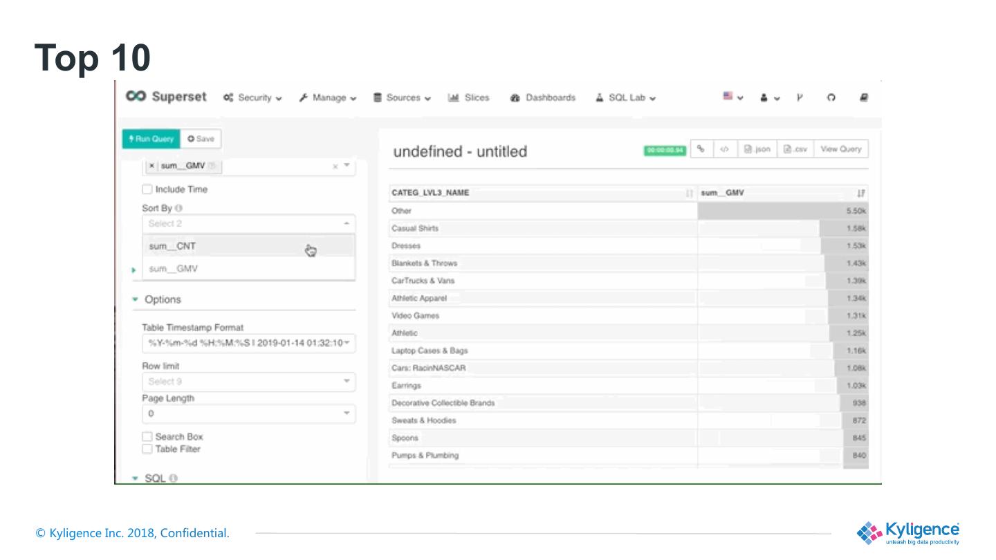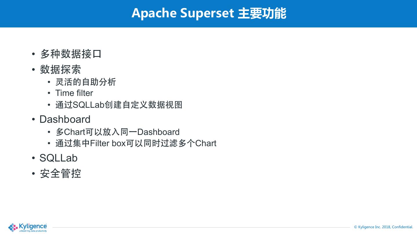 1 . Kyligence Apache Superset SQL Yongjie Zhao / Jan 23, 2019 info@kyligence.io