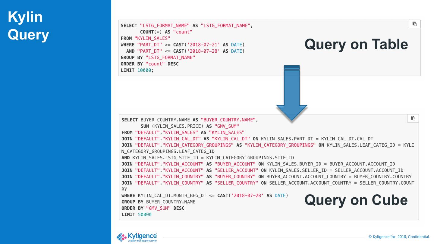 7 .Kylin Query Query on Table Query on Cube 1 0, . ,