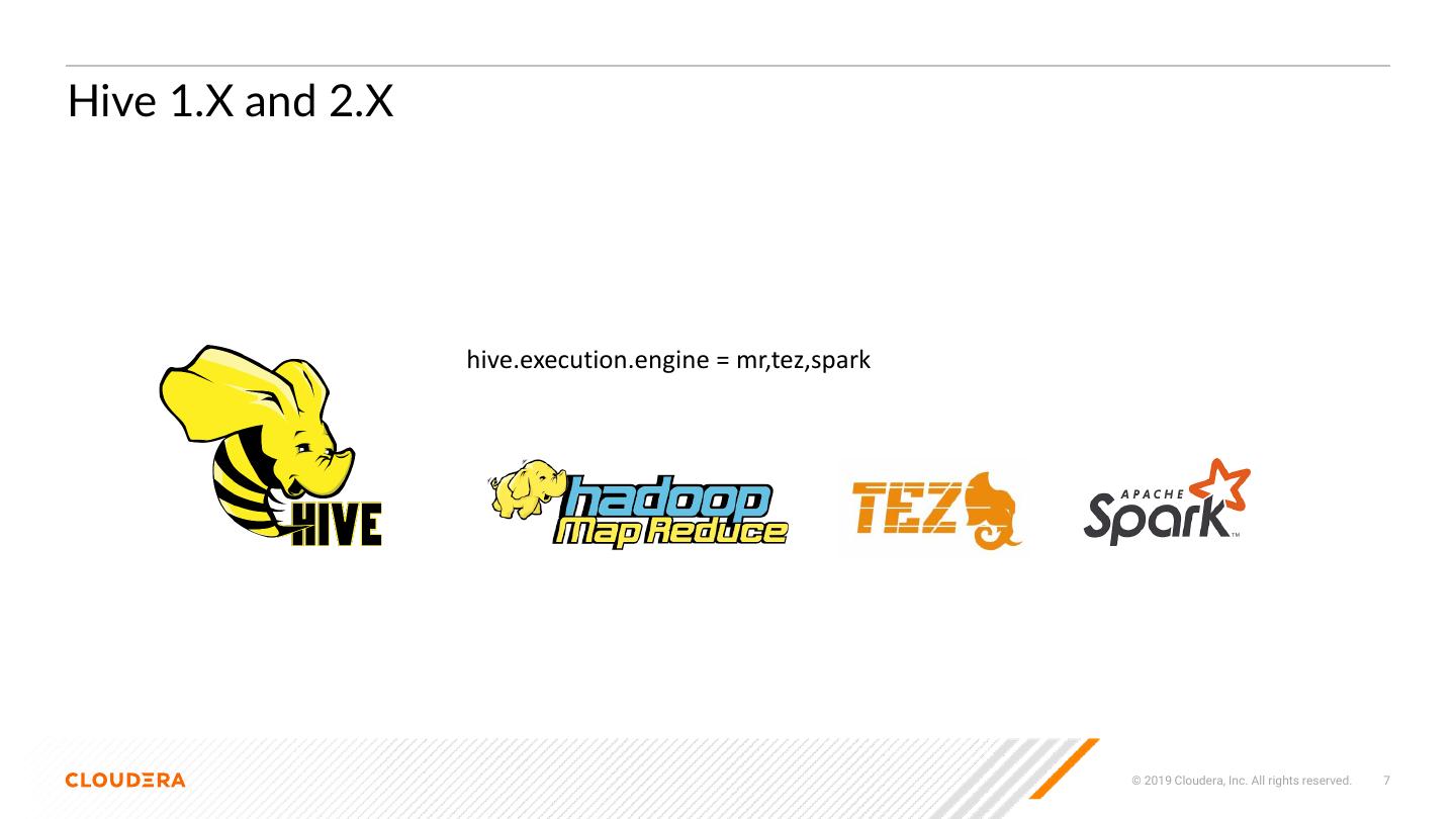 7 .Hive 1.X and 2.X hive.execution.engine = mr,tez,spark © 2019 Cloudera, Inc. All rights reserved. 7