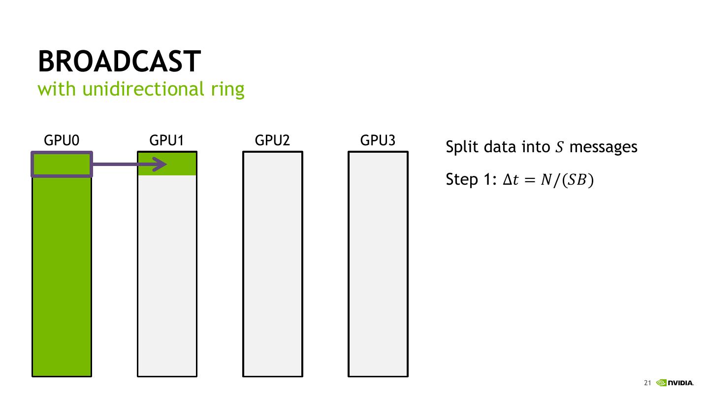 20 .BROADCAST with unidirectional ring GPU0 GPU1 GPU2 GPU3 20
