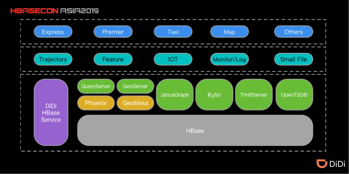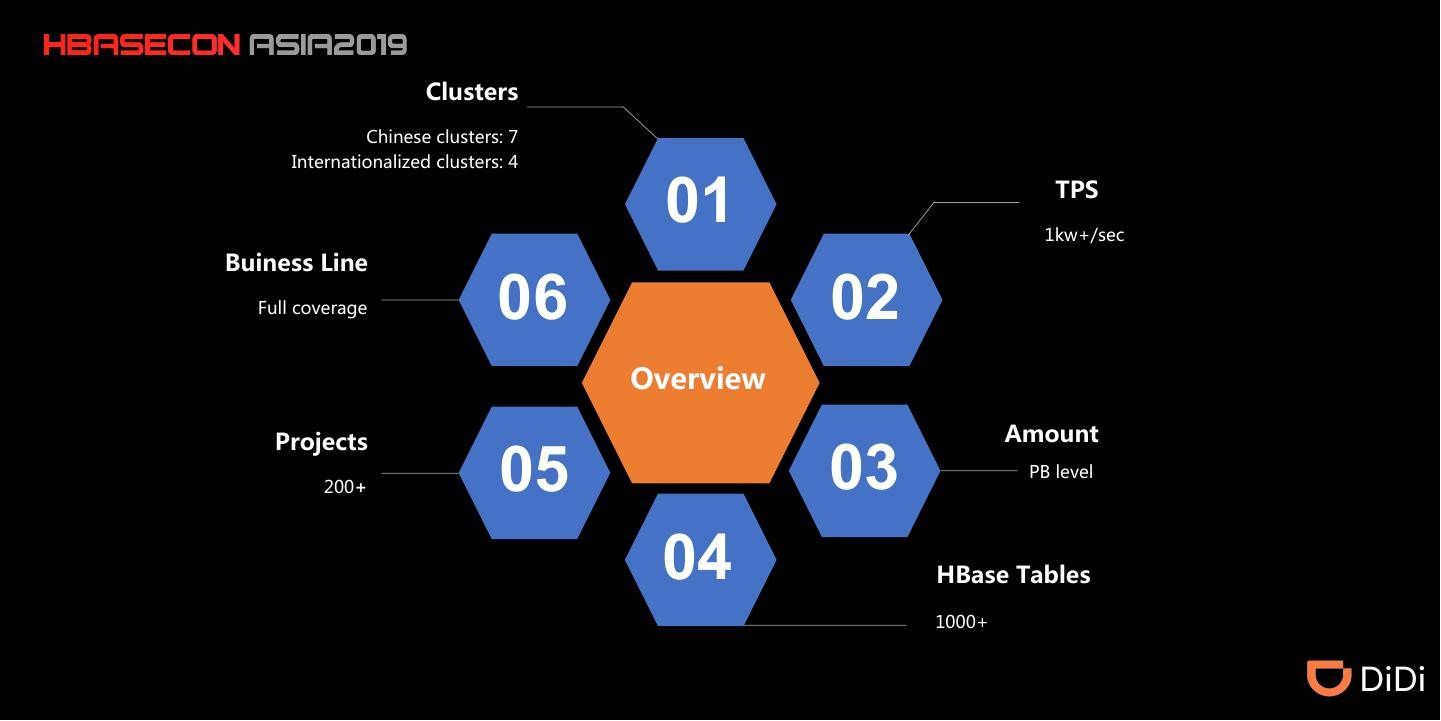 滴滴国内的 HBase 集群有7个,海外国际化集群有4个。覆盖了滴滴全部的业务线,目前服务的项目大概有200多个,数据级是 PB 级。