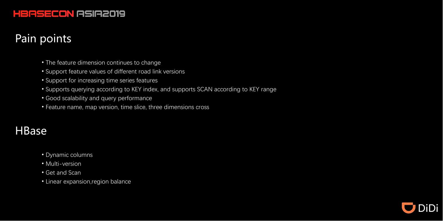 9 .Pain points • The feature dimension continues to change • Support feature values of different road link versions • Support for increasing time series features • Supports querying according to KEY index, and supports SCAN according to KEY range • Good scalability and query performance • Feature name, map version, time slice, three dimensions cross HBase • Dynamic columns • Multi-version • Get and Scan • Linear expansion,region balance
