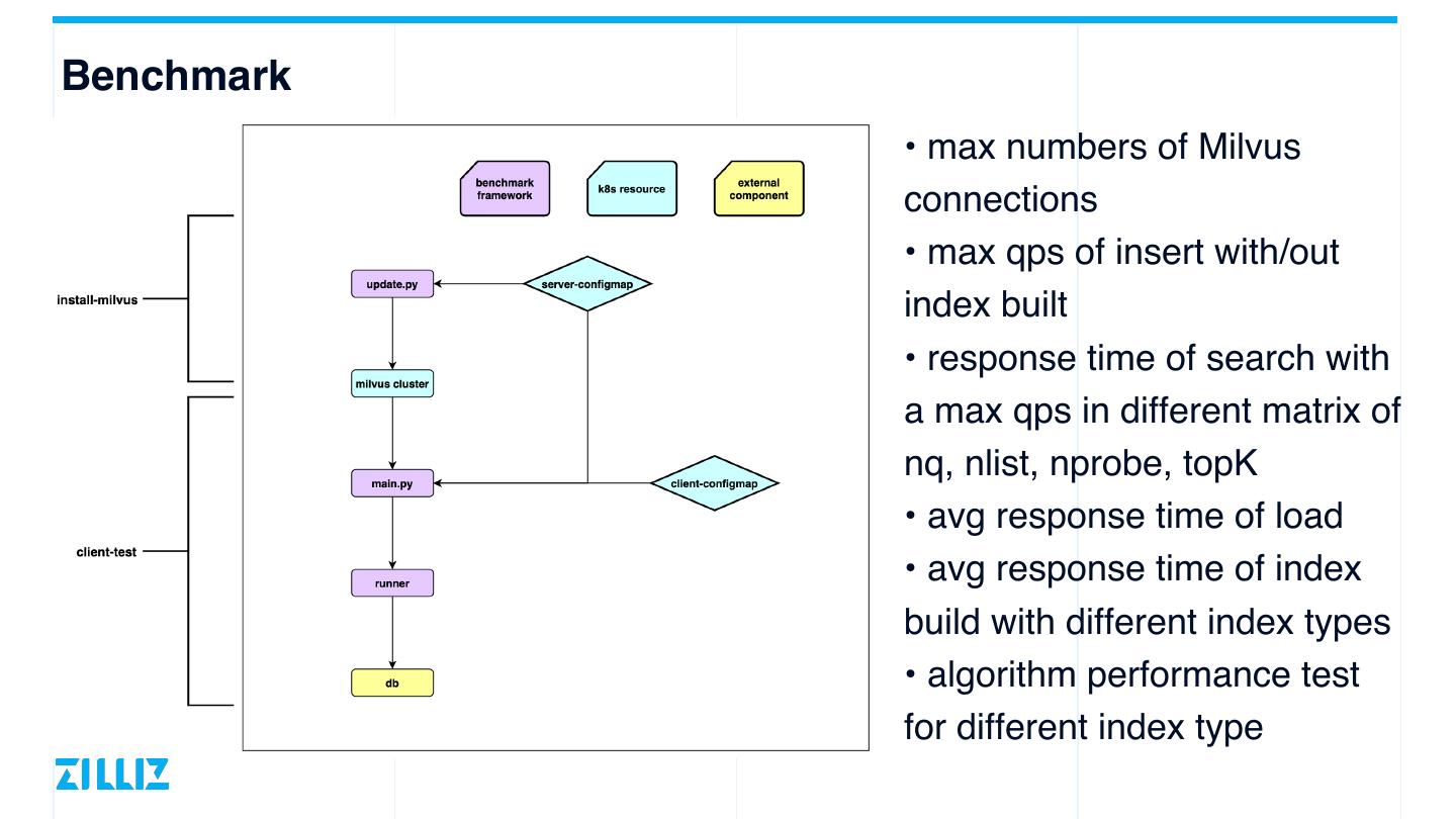 24 .Benchmark • max numbers of Milvus connections • max qps of insert with/out index built • response time of search with a max qps in different matrix of nq, nlist, nprobe, topK • avg response time of load • avg response time of index build with different index types • algorithm performance test for different index type