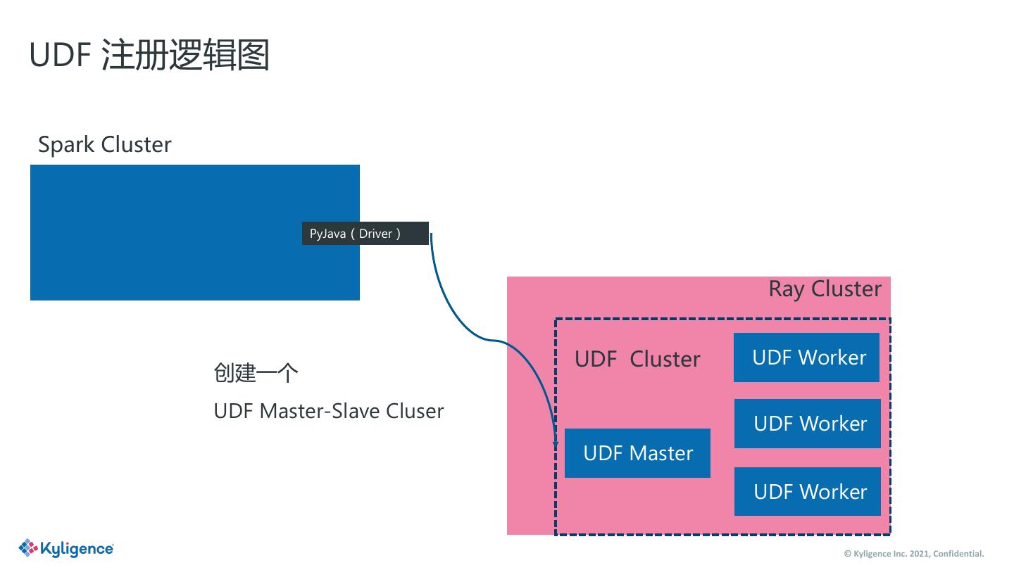 21 .UDF 注册逻辑图 Spark Cluster PyJava(Driver) Ray Cluster UDF Cluster UDF Worker 创建一个 UDF Master-Slave Cluser UDF Worker UDF Master UDF Worker © Kyligence Inc. 2021, Confidential.