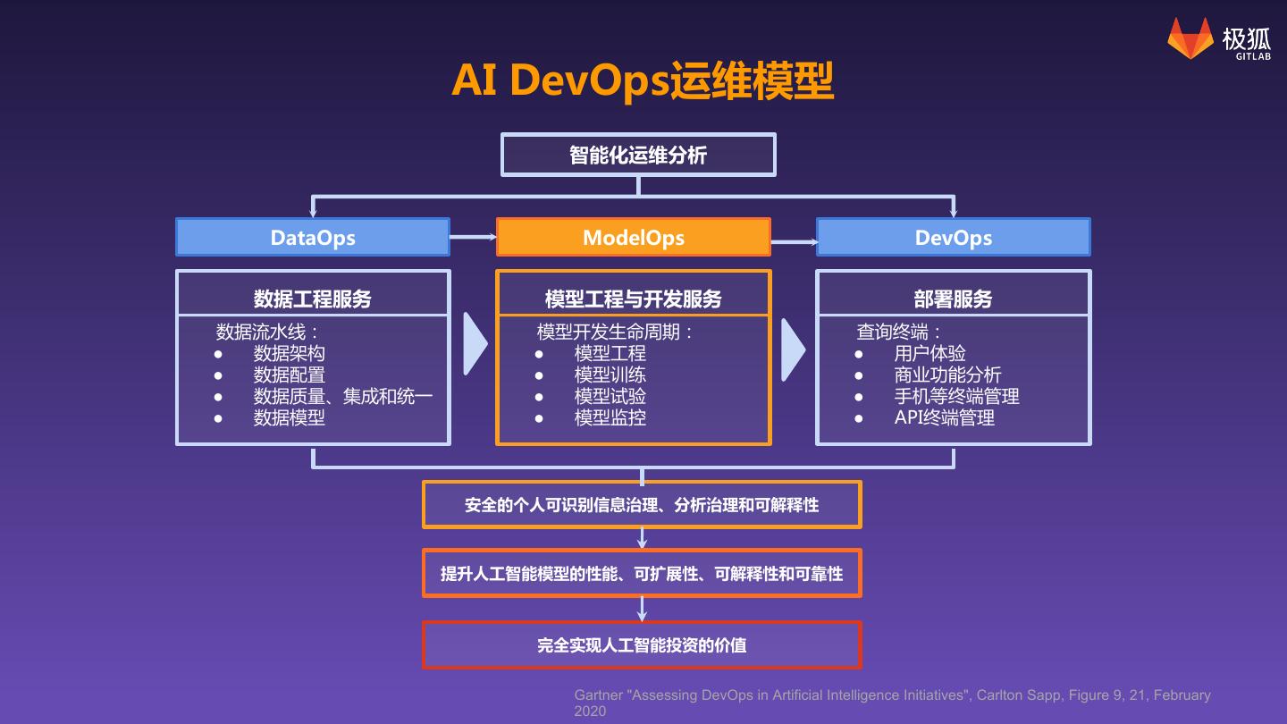 9 . AI DevOps运维模型 智能化运维分析 DataOps ModelOps DevOps 数据工程服务 模型工程与开发服务 部署服务 数据流水线: 模型开发生命周期: 查询终端: ● 数据架构 ● 模型工程 ● 用户体验 ● 数据配置 ● 模型训练 ● 商业功能分析 ● 数据质量、集成和统一 ● 模型试验 ● 手机等终端管理 ● 数据模型 ● 模型监控 ● API终端管理 安全的个人可识别信息治理、分析治理和可解释性 提升人工智能模型的性能、可扩展性、可解释性和可靠性 完全实现人工智能投资的价值 Gartner "Assessing DevOps in Artificial Intelligence Initiatives", Carlton Sapp, Figure 9, 21, February 2020