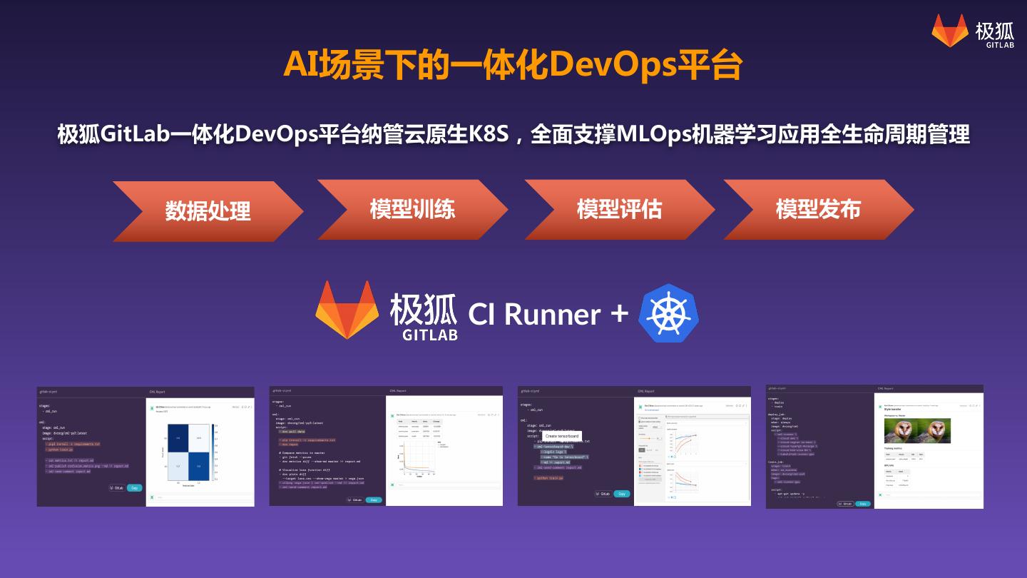 10 . AI场景下的一体化DevOps平台 极狐GitLab一体化DevOps平台纳管云原生K8S,全面支撑MLOps机器学习应用全生命周期管理 数据处理 模型训练 模型评估 模型发布 CI Runner +