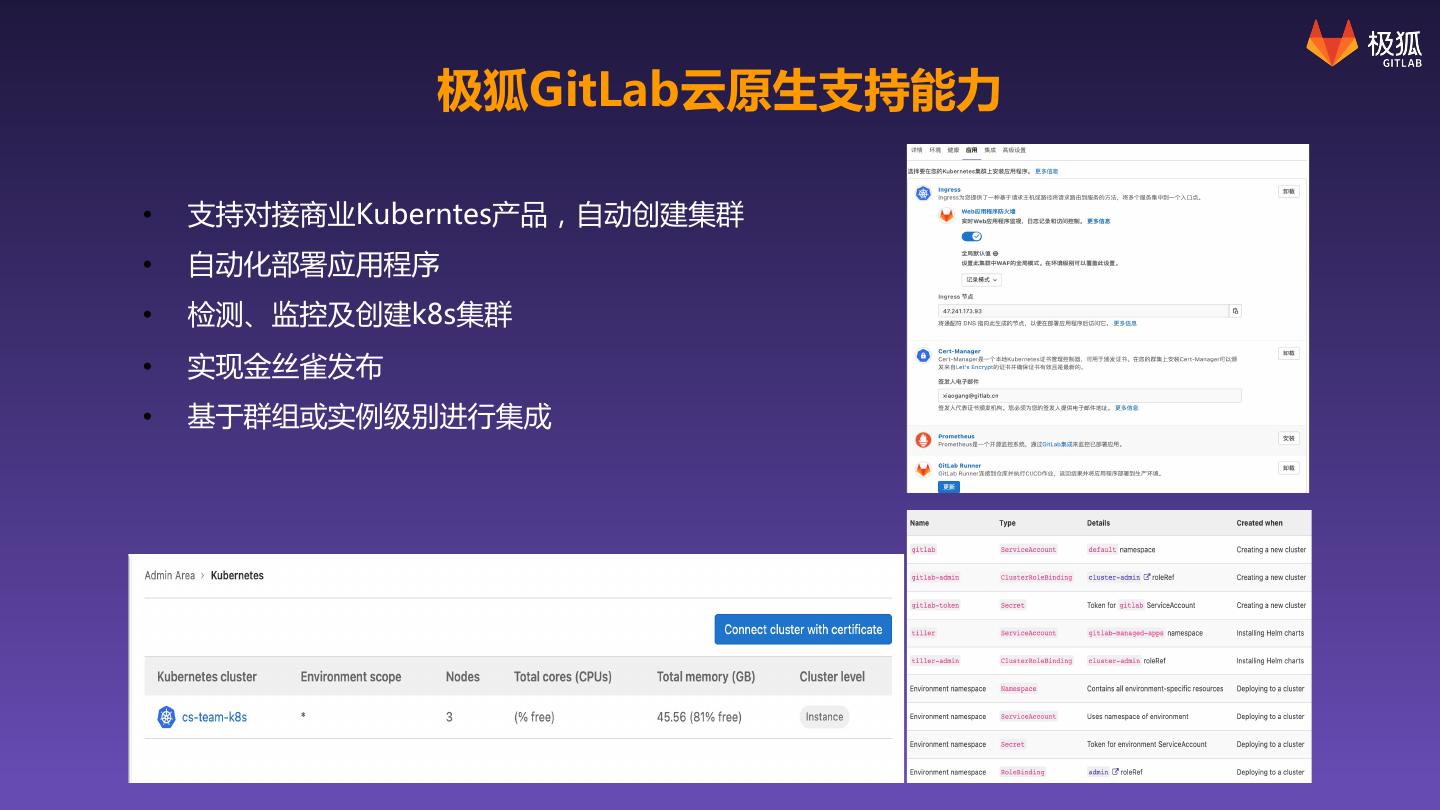 12 . 极狐GitLab云原生支持能力 • 支持对接商业Kuberntes产品,自动创建集群 • 自动化部署应用程序 • 检测、监控及创建k8s集群 • 实现金丝雀发布 • 基于群组或实例级别进行集成