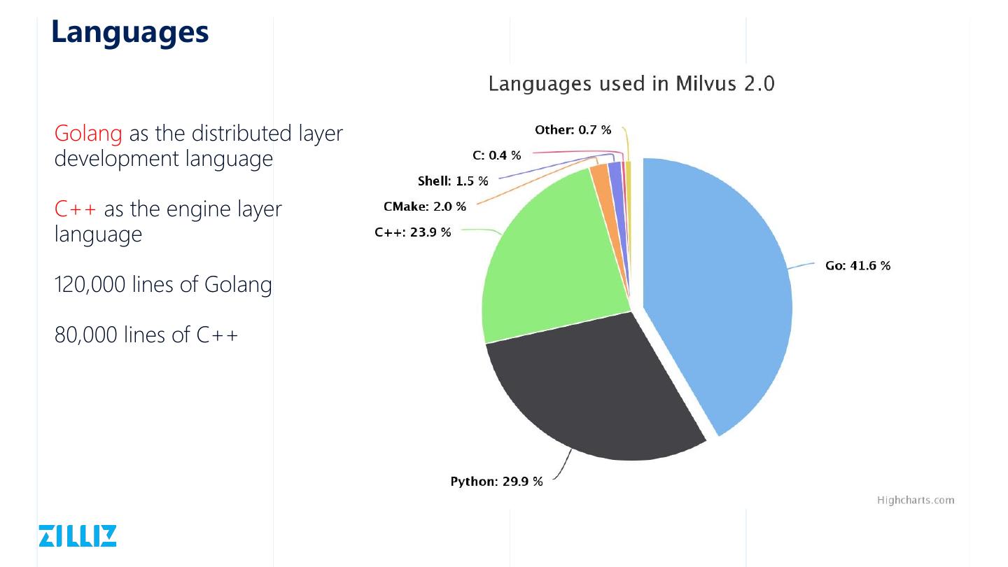 11 .Languages Golang as the distributed layer development language C++ as the engine layer language 120,000 lines of Golang 80,000 lines of C++