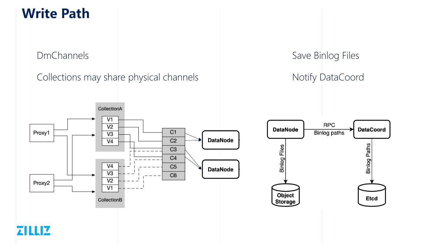 20 .Write Path DmChannels Save Binlog Files Collections may share physical channels Notify DataCoord
