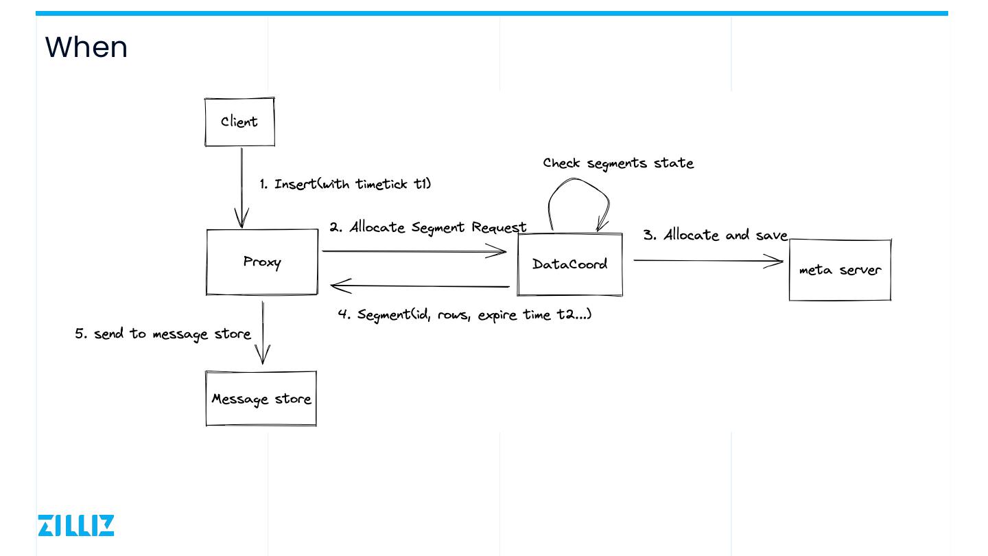 20 .When to Flush DataNode will report the time tick of a channel to DataCoord. If the time tick received by DataCoord is larger than the time tick of a segment’s last allocation, the segment’s allocated space is released.